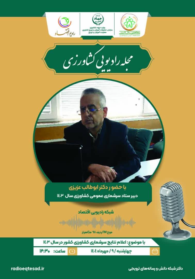 این مصاحبه با موضوع سرشماری کشاورزی، روز چهارشنبه ۹ مهرماه ۱۴۰۴، در برنامه مجله کشاورزی رادیو اقتصاد انجام شد.